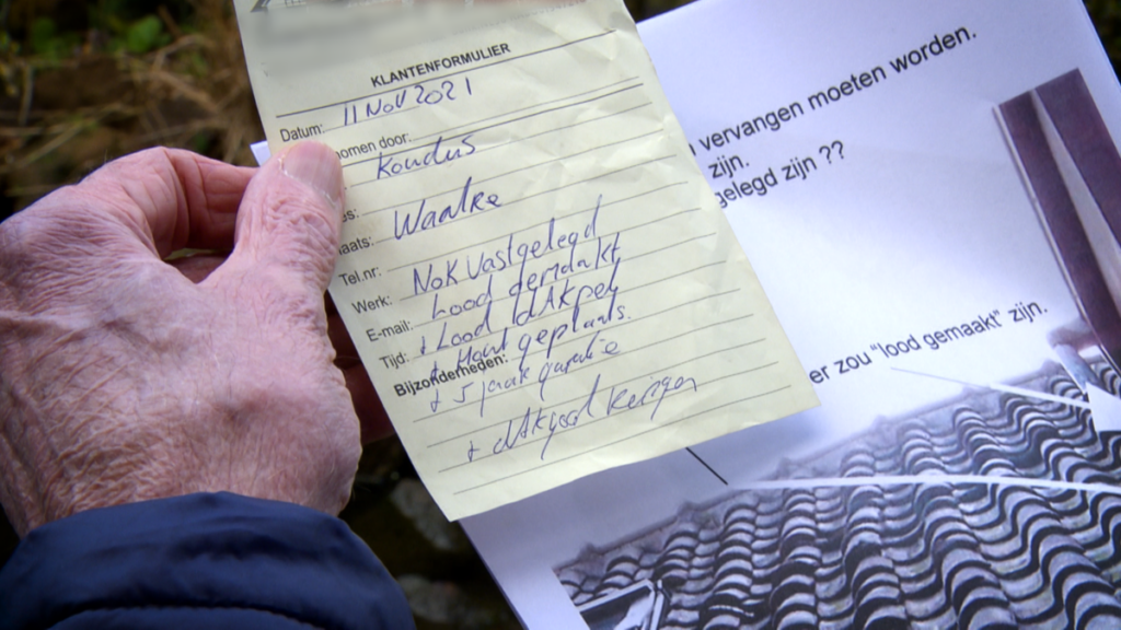 Jo (83) en Hein Koudijs (85) wonen in een eengezinswoning in Waalre. Als een klusbedrijf zich aan de deur meldt om voor 20 euro de dakgoten schoon te maken, komt dat meneer Koudijs goed uit. Hij vermoedt een lekkage aan zijn dak en vraagt het bedrijf daar naar te kijken. Maar volgens het bedrijf is er veel meer aan de hand en zijn er ook problemen met de schoorsteen en de nokvorsten. Ze maken een mondelinge prijsafspraak: als het echtpaar 1.500 euro contant betaald, worden de problemen opgelost. Maar als de twee werklieden na 1,5 uur klaar zijn, voelt het echtpaar zich opgelicht.
